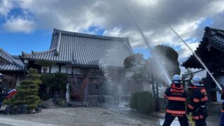 1月26日が文化財防火デーということで、今年は佐渡分団長・副団長が率いる第2分団(毎年5分団を順番に回っていきます)の皆様によりまして大願寺での消火訓練が行われました。 迅速かつ的確な行動で見ていてとても頼もしい訓練でした。 放水の後は女性...