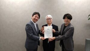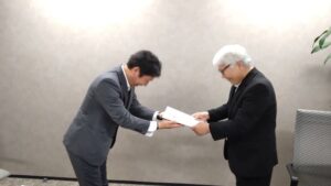 その後、コガソフトウェア株式会社様へ。コガソフトウェア様はかねてから阪南市の健康事業や移動支援事業などにご協力いただいており、この度、企業版ふるさと納税のご協力をいただきましたので、感謝状を贈呈させていただきました。
