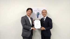 まずはメイワフォーシス株式会社様へ。メイワフォーシス様はもともと大阪創業の会社で、ご縁があって阪南市のJブルークレジットをご購入いただいております。