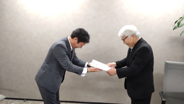 まずはメイワフォーシス株式会社様へ。メイワフォーシス様はもともと大阪創業の会社で、ご縁があって阪南市のJブルークレジットをご購入いただいております。