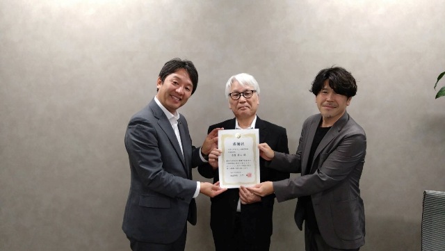 その後、コガソフトウェア株式会社様へ。コガソフトウェア様はかねてから阪南市の健康事業や移動支援事業などにご協力いただいており、この度、企業版ふるさと納税のご協力をいただきましたので、感謝状を贈呈させていただきました。