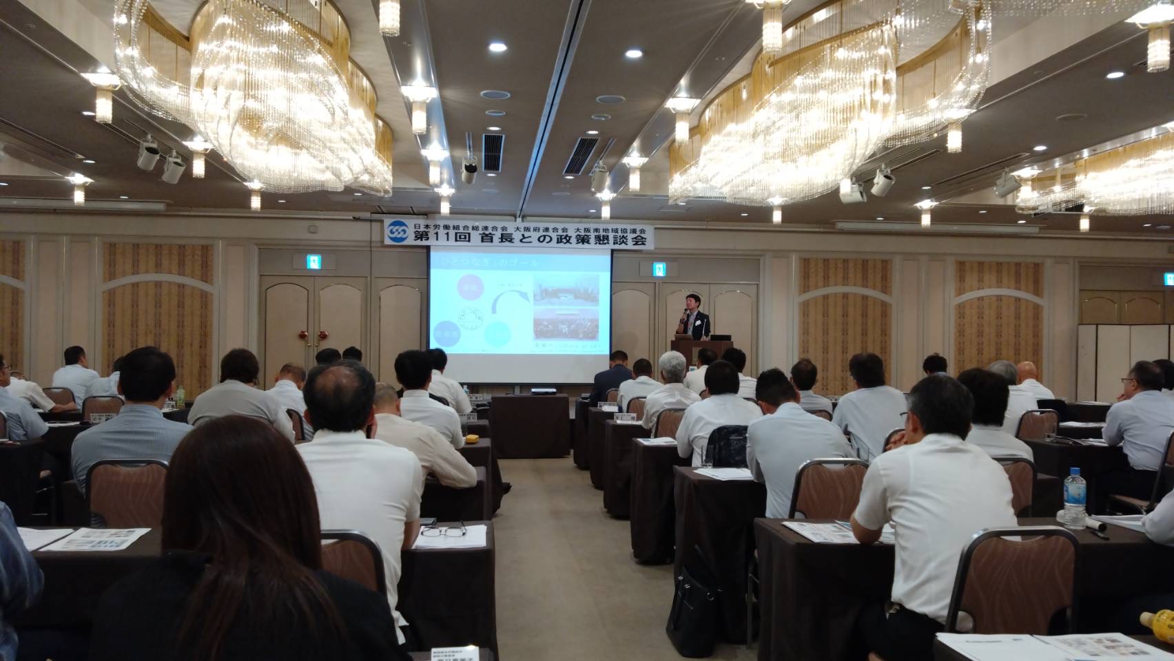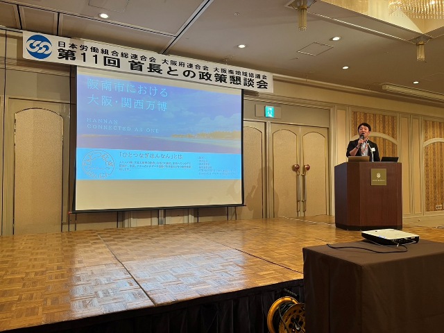本日は連合大阪大阪南地域協議会様による「第11 回首長との政策懇談会」が開催されました。堺市以南13市町の首長がそれぞれ15分の持ち時間で市の政策をスピーチします。