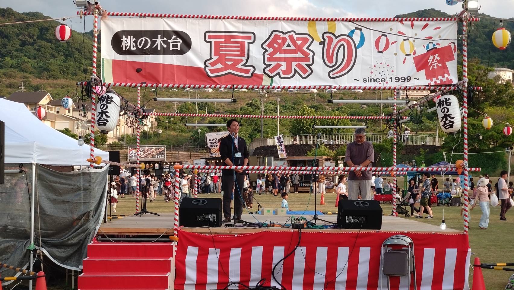 ステージでご挨拶をさせていただきました。桃の木台はイベントや自主防災など住民自治をしっかり運営していただいている地域。引き続きよろしくお願いいたします。お久しぶりな方も含めたくさんご挨拶させていただきました。先日、まちづくりディスカッションした生徒会の皆さんもご挨拶に来てくれて、皆様本当にありがとうございました。