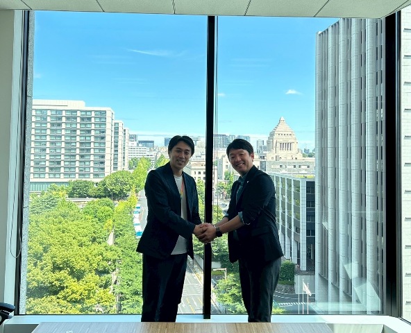 平野社長と。とても有意義な内容のご挨拶となりました。これからもしっかり阪南市の発展に向けて連携していきたいと思います。お忙しい中ご対応いただきましてありがとうございました。