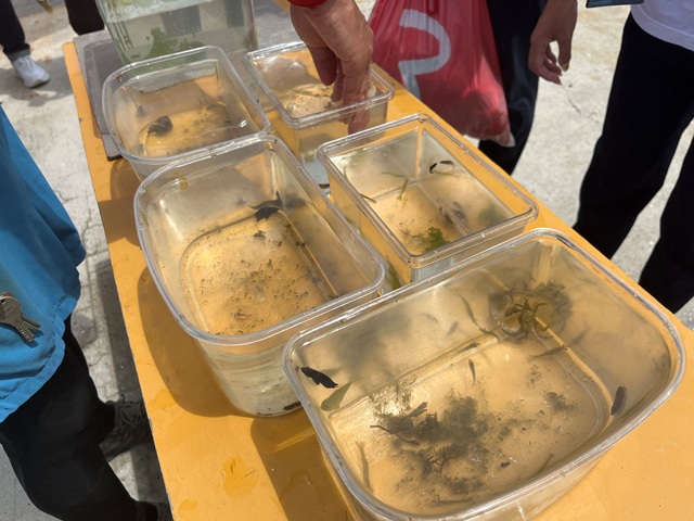 陸(おか)に上がったら、あらかじめチーム☆ガサの皆さんがガサってくれていた生き物観察。ゴンズイこわい。ヒラムシかわいい。