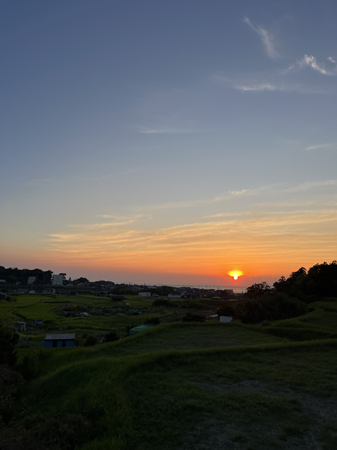 写真は数日前の夕陽。阪南市は空が広く海に映る夕陽が美しい。