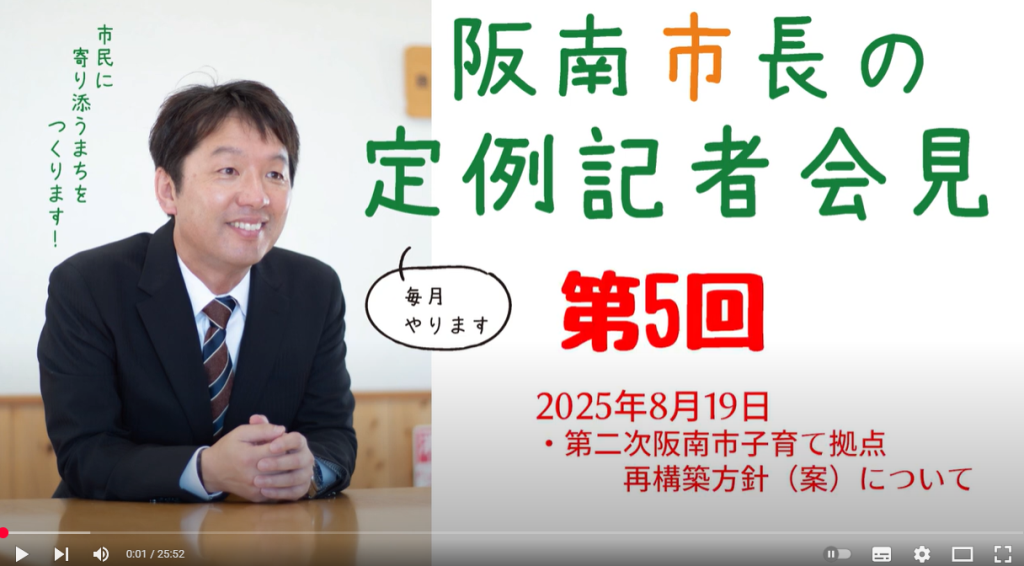 市長の定例記者会見(第5回、8月19日実施分)をyoutubeでアップいたしました。