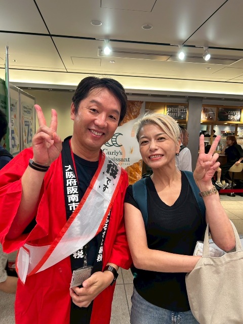 で、今回の本題はここからなんです。私、基本的に東京駅で阪南市のPRしておりまして、汗びっしょりでステージこなして、お客さんにお声掛けしておりますと、女性が一人こちらを向いて立っておりまして、、焦点があうのに2秒、頭の中の整理をするのに3秒、合計5秒かかって「・・・田中さん!!」ってなりました!