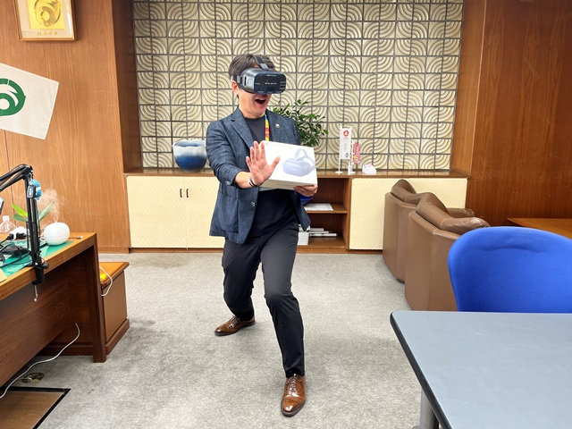 阪南市の防災に新しいアイテムが登場いたしました。VRヘッドマウンテンディスプレイ。
