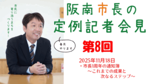 令和7年11月の第8回阪南市長の定例記者会見のアーカイブをアップいたしました。
