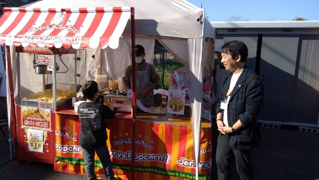 桃の木台南住民センター祭りへお邪魔しました。まだちょっと開会前で準備中でしたが、美味しい焼き鳥とポップコーンをいただきました。