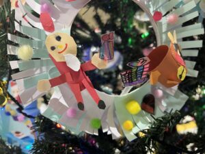 阪南市役所では、今、下荘保育所と石田保育所のみんながいつものクリスマスツリーを展示してくださっています。