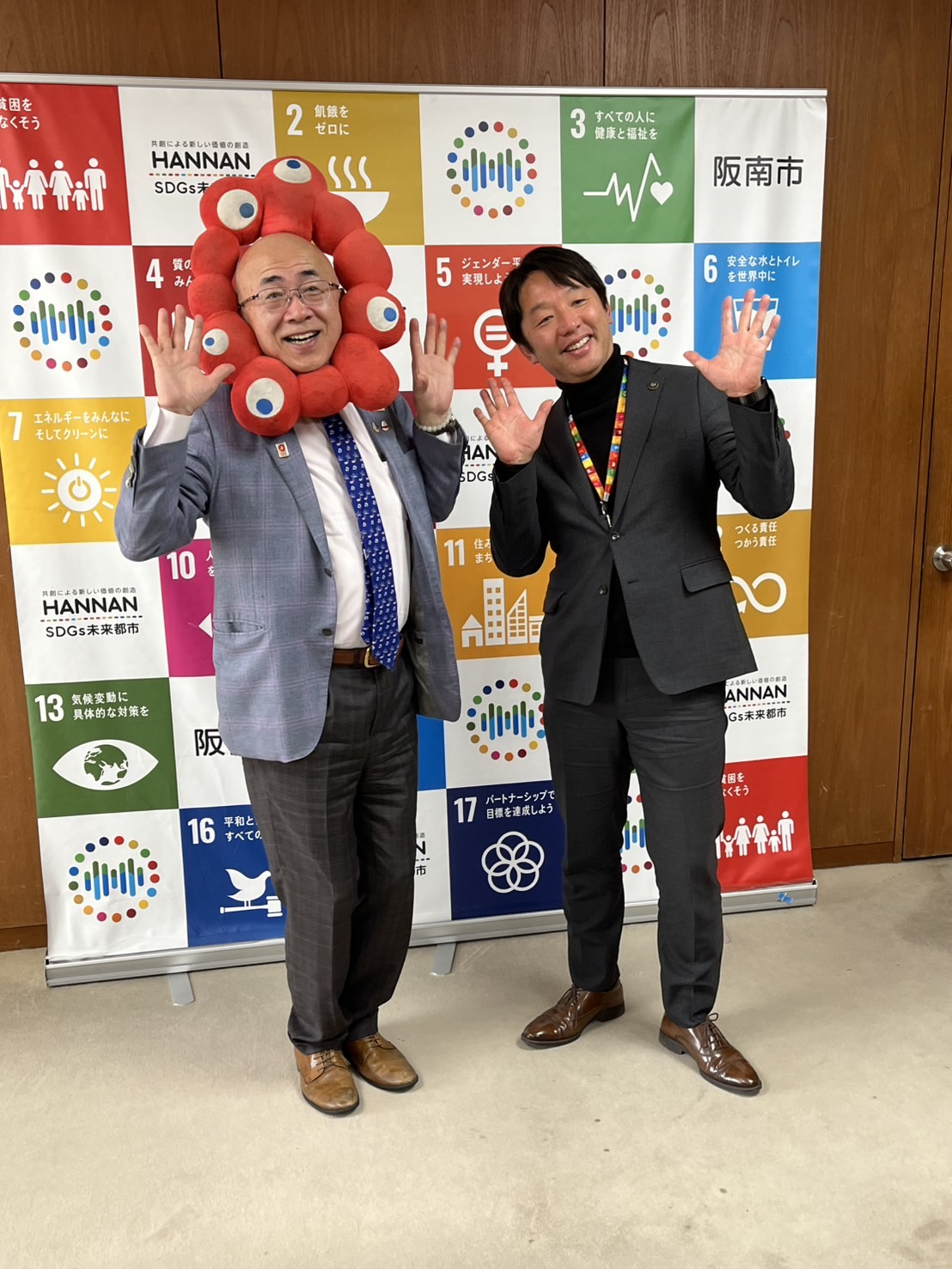 本日は大阪観光局の溝畑理事長、皆さんご存じミャクひろしさんが阪南市にお越しくださいました。