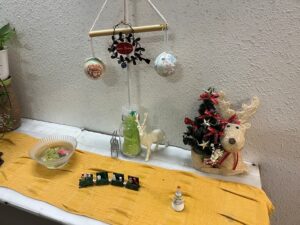 飾り棚はすっかりクリスマスでした。いつもありがとうございます。