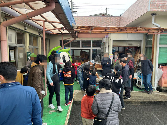 毎月行っている舞っ子食堂の一環で餅つき大会です。はなてぃも特別参加。