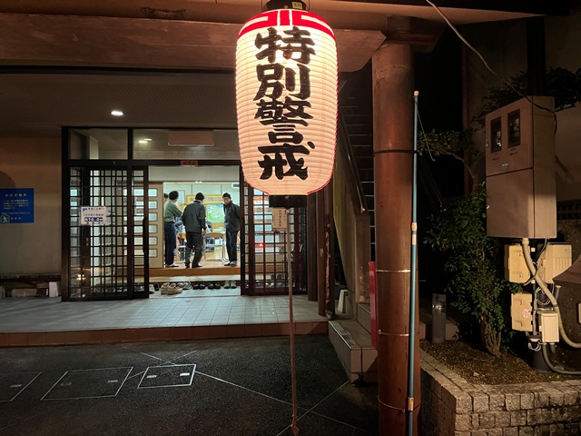 その後、地域の夜警活動の陣中見舞いということで、山中渓住民センターへ。