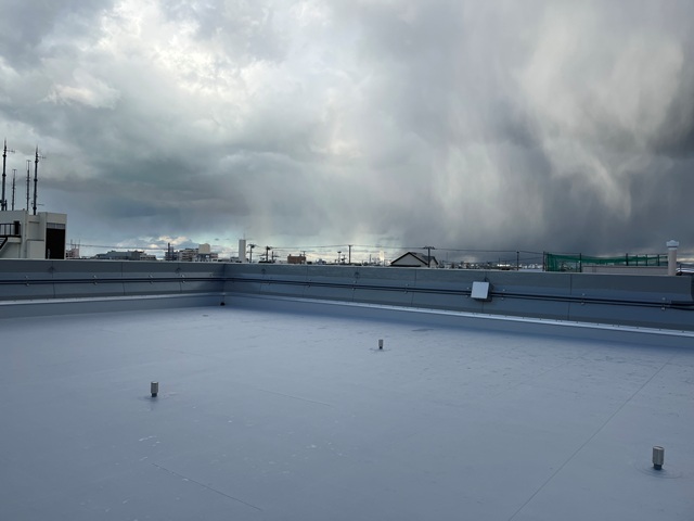 防水工事もピカピカに出来上がっておりました。それにしても凄い雪雲。