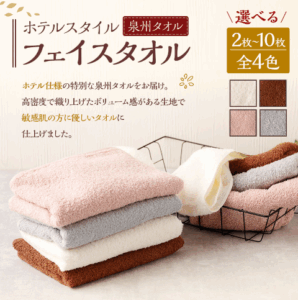 まずは泉州タオル。阪南市からの泉州タオルはいろんな種類の返礼品があります。