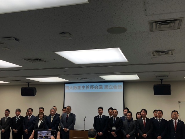 大和川以南の22市町村が勢ぞろいし南大阪創生首長会議に関する協定書を交わすことにより南大阪創生首長会議が設立いたしました。式典には国会議員、府議会議員、各市町村の議長、商工会・商工会議所代表、関係経済団体、マスコミ関係者などたくさんの来賓の皆さんも来ていただきました。