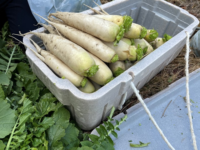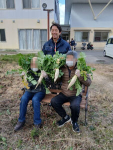 皆さん大満足のようで「この年になって初めて大根引いた!」という方や、「こうやって引くんやで」と手慣れた手つきで何十本も引いてくれる方も。