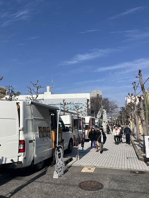 商工会による匠のippin冬のあじわいマルシェ。キッチンカーもたくさん出ていますし、匠のippinも大勢の人で賑わっています。