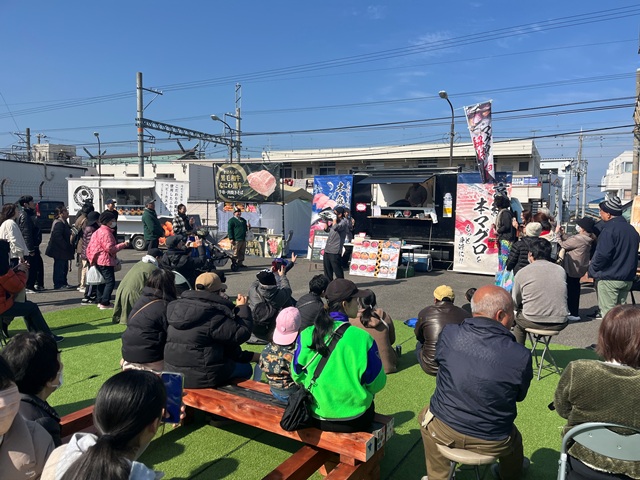 そして、チョコっとやってみよう極寒マルシェ。マグロの解体ショーには大勢のお客さん。さすが鮪の集客力おそるべし。マグロのキッチンカー、株式会社atさんは先日、「災害時におけるキッチンカーによる炊き出し等の実施に関する協定」を結ばせていただきまして、地域のためにワガゴトとなって取り組んでいただいております。本当にありがとうございます。