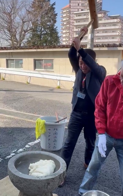 お餅つきもさせていただきました。できたお餅はお客さん皆さんに振舞われました。