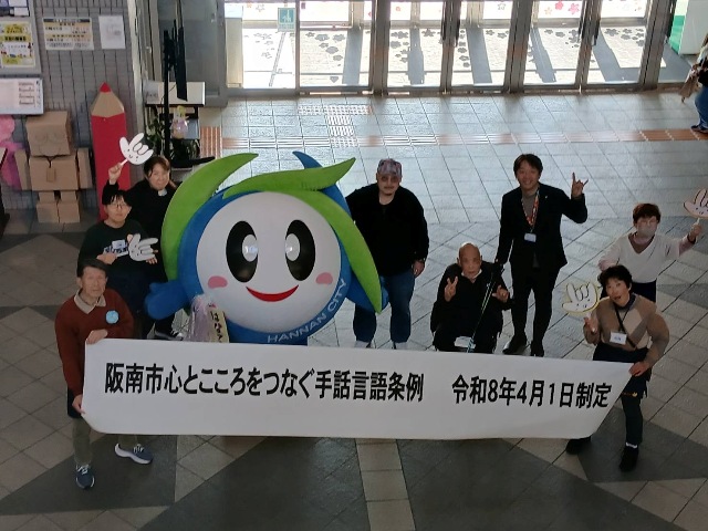 皆さんで記念撮影。いよいよ阪南市心とこころをつなぐ手話言語条例、月曜日の議会で議決されれば4月1日制定、となります。ご準備いただきました皆様ありがとうございました。