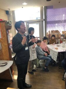 あたごプラザ協議会や舞コーディネーターズ(「まいこ」って略すらしい)の皆さんに、これからの地域づくりについて、先日から行っていたアンケートの取りまとめについて等、宝楽さんから詳しく報告がありました。冒頭に挨拶をさせていただきました。アンケート結果、非常に興味深いですね。しっかり研究したいと思います。
