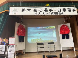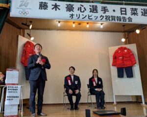 すぐに阪南に戻って、藤木豪心選手・日菜選手オリンピック激励報告会。