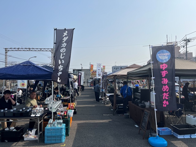 メダカ屋さん40店舗以上がずらり。キッチンカーもたくさん来ていただいており、賑わっておりました。ご準備いただきました皆様ありがとうございました。