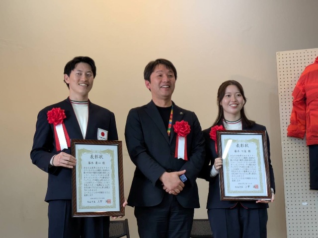 すぐに阪南に戻って、藤木豪心選手・日菜選手オリンピック激励報告会。