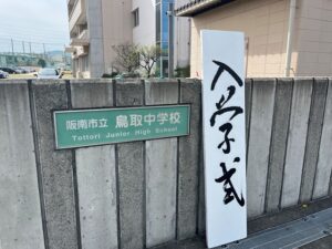 本日阪南市では鳥取中学校114名、貝掛中学校69名、鳥取東中学校132名、飯の峯中学校60名、合計375名の新入生が入学式を迎える見込みです。新入生、保護者の皆様おめでとうございます。市議会議員の皆様、地域の皆様、お忙しい中ご来賓としてご参加いただきありがとうございました。