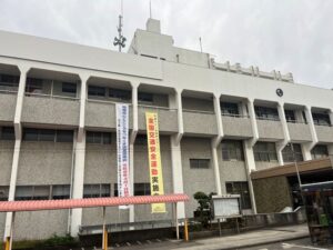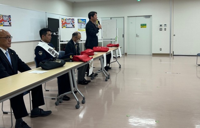 冒頭のご挨拶をさせていただきました。今年度から始まりました自転車の青切符についてお話させていただきました。その後、街頭に出てティッシュ配布。