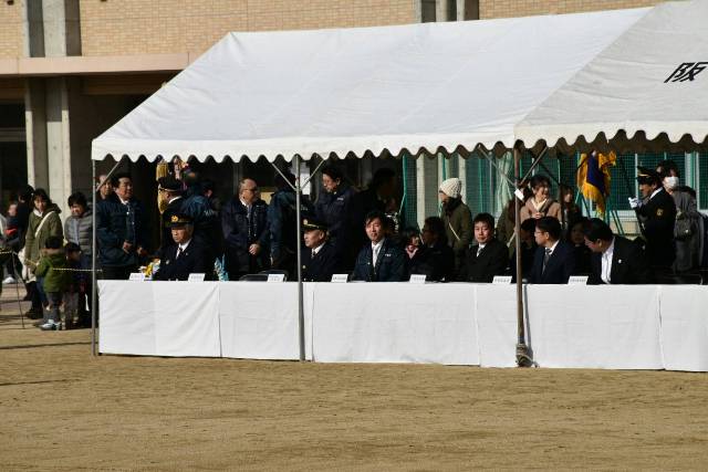 消防署員の皆さん、消防団員の皆さん、そして車両を観閲(市長、消防署長、消防団長と一緒に列になって回る)させていただいたり、